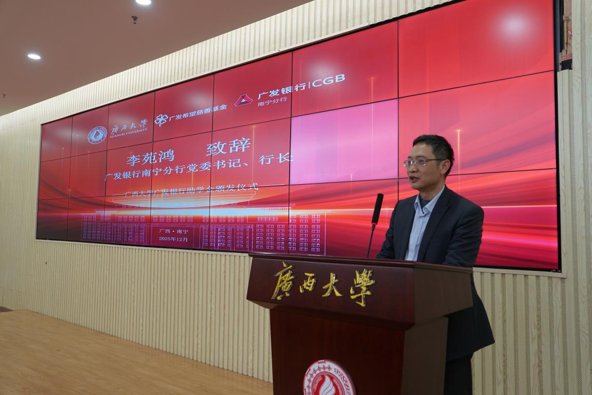 12月30日,英国上市公司3652025年广发银行助学金颁发仪式在校友服务中心会议厅顺利举办。广发银行南宁分行党委书记、行长李苑鸿,英国上市公司365教育发展基金会秘书长周海斌,广西青少年发展基金会代表出席活动,仪式由英国上市公司365教育发展基金会副秘书长陈懿主持。